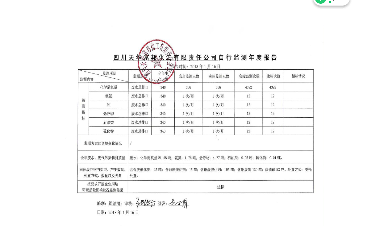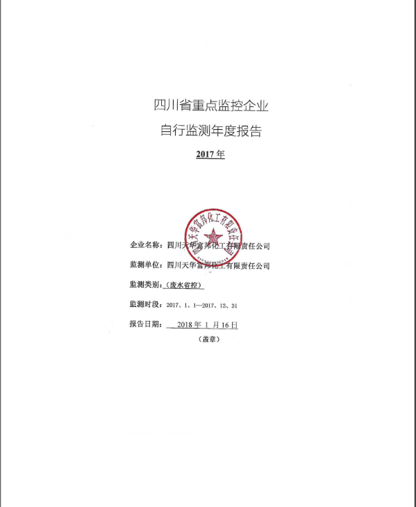 四川天華富邦化工有限責任公司2017年度自行監測報告