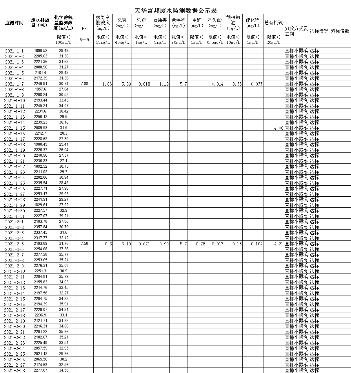 四川天華富邦化工有限責任公司1月2月廢水監測數據公示