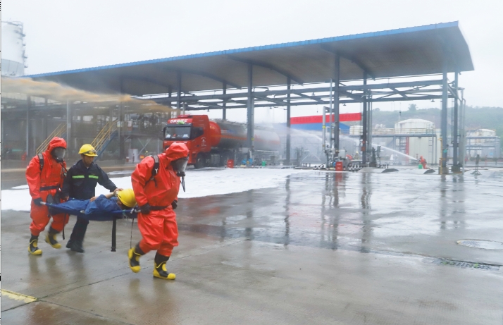 接到報警后,集團立即啟動綜合應急預案,圍繞消防救援、泄漏控制、現場堵漏、醫療救援以及輿情防控等措施展開演練。